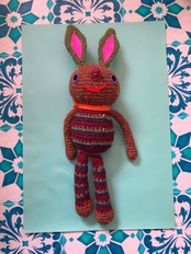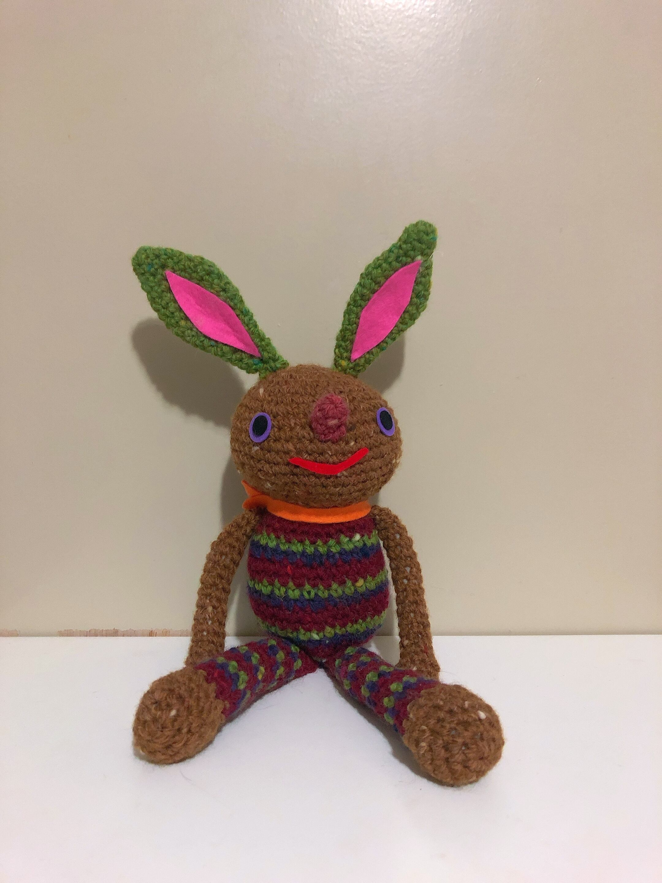 サイズは耳を入れたら40cmほど。耳無しだと30cmで座らせて18cm、耳を入れると28cmほどです。